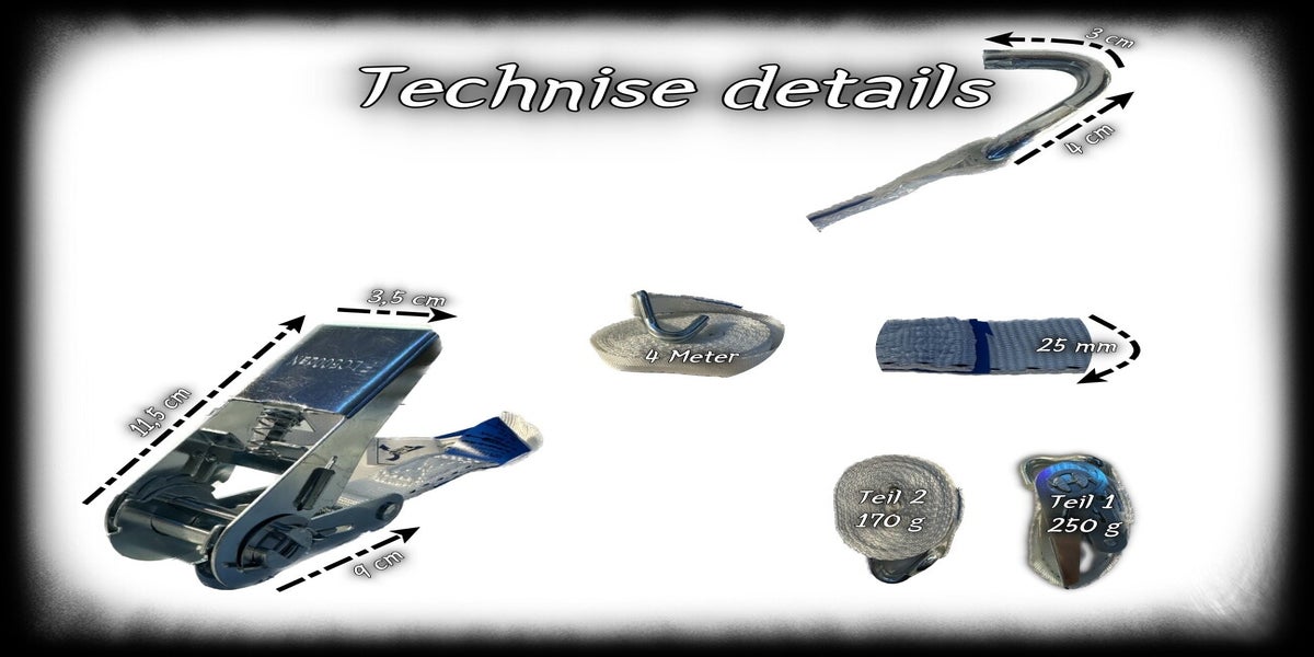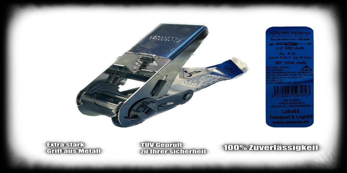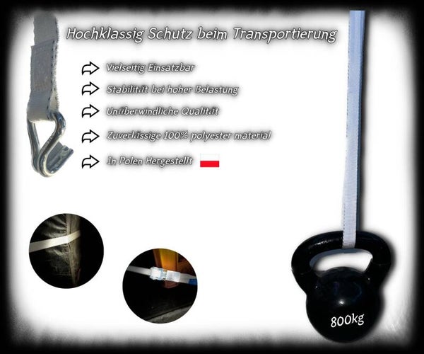 - In Polen hergestellte - Die Zurrgurte mit ratsche besteht aus dem 100% Polyester mit unüberwindlich Metall Haken und Griff - 4 Meter, 2,5cm Breit, Tragfähigkeit bis: 800kg.